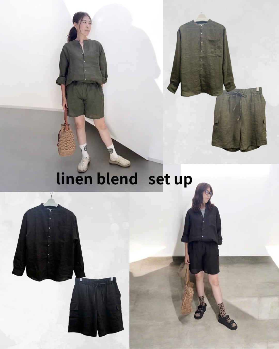 セットアップ リネン100% 長袖シャツ ハーフパンツ