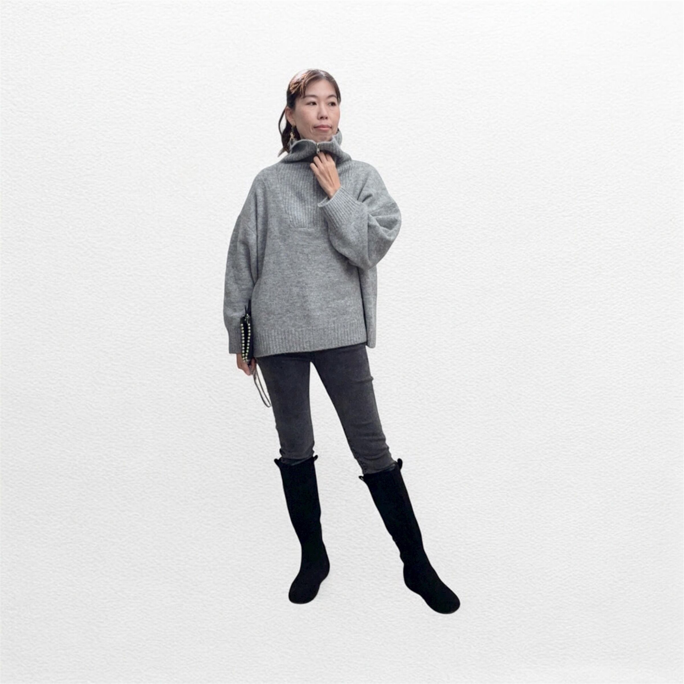 ジップを開ければ抜け感のある抜け襟風に、閉めればハイネックのような表情に。