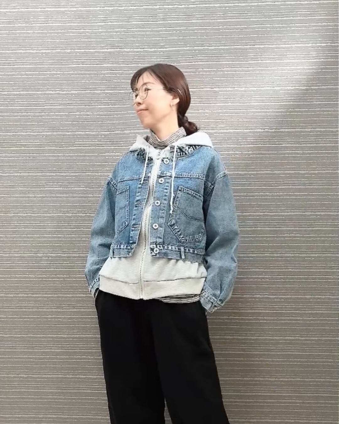 デニム×スウェットの異素材ミックスで、