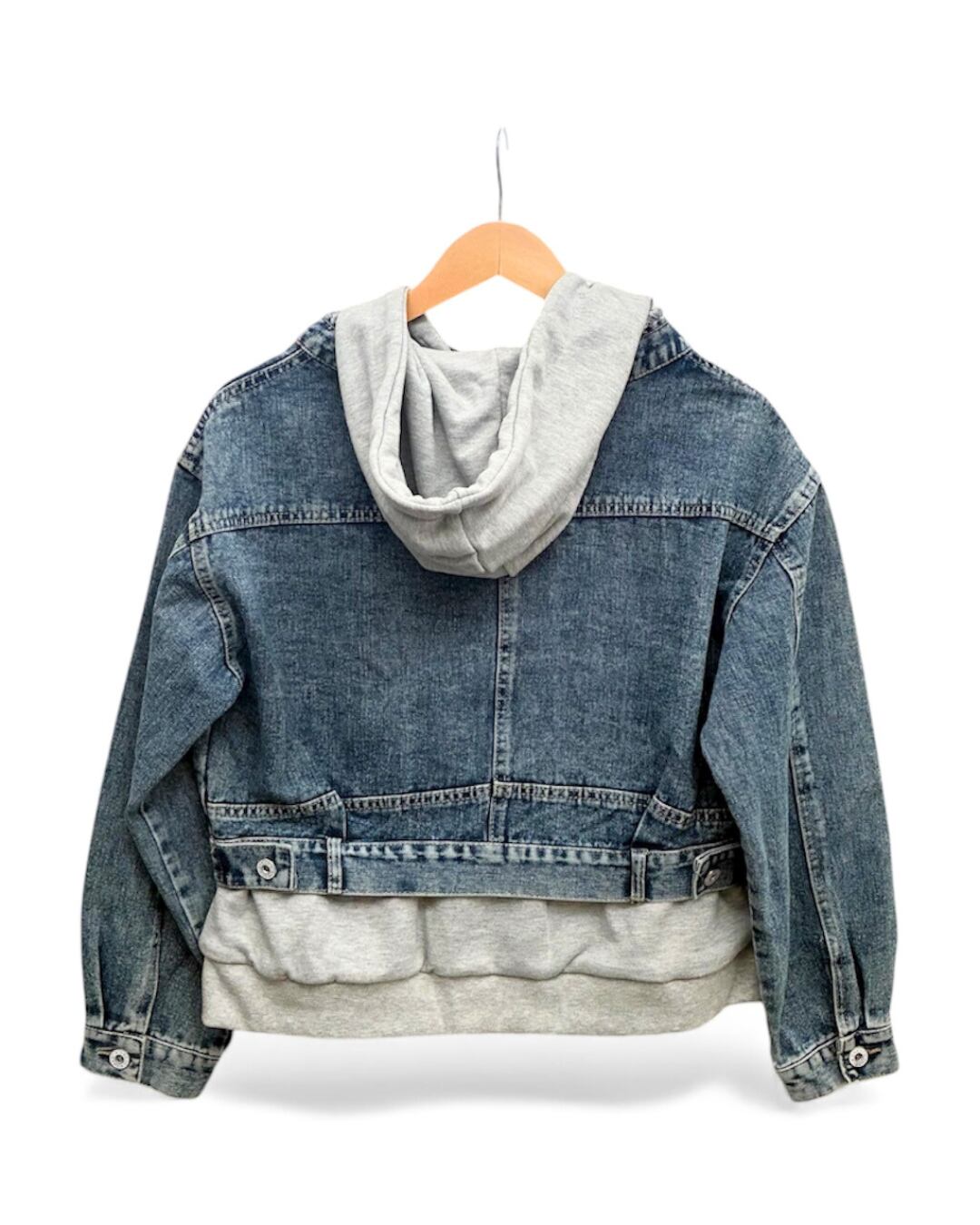 デニムジャケットにパーカーデザインをドッキングした、