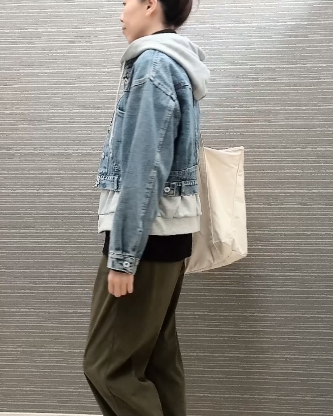 デニムの程よいハリと、スウェットの柔らかさが合わさり、